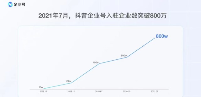 (图注:抖音企业号入驻企业数,数据截止2021年7月)